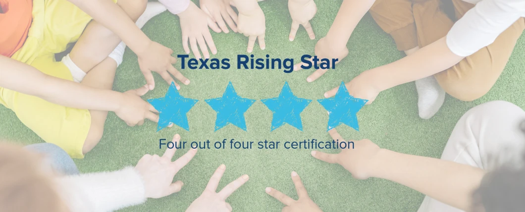 At our Texas Rising Star 4-Star daycare center, we prioritize top-tier child care with a focus on nurturing development, safety, and engaging learning environments. This prestigious rating reflects our commitment to exceeding state standards through qualified staff, enriching curricula, and supportive family partnerships, ensuring every child thrives in a stimulating and secure setting.
